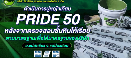 สนามหนึ่งโรยทรายและเม็ดยาง อีกสนามเตรียมปรับพื้นให้เรียบ รอการปูหญ้าเทียม ต่อไป เขตประเวศ กรุงเทพมหานคร สวัสดีครับ วันนี้เรากำลังดำเนินการสร้างสนามฟุตบอลหญ้าเทียม โดยขณะนี้อยู่ในขั้นตอนการโรยทรายครับ เราจะโรยทรายหนา 1.5 ซม. และเม็ดยางหนา 2.5 ซม. เพื่อให้สัมผัสใกล้เคียงกับสนามหญ้าจริงมากที่สุดครับ สำหรับหญ้าเทียมความสูง 5 ซม. นั้น เราเลือกใช้หญ้าเทียม PRIDE 50 ซึ่งเป็นหญ้าเทียมคุณภาพดีและได้รับความนิยมจากลูกค้าเป็นอย่างมาก มีคุณสมบัติพิเศษด้านความนุ่มนวลและความปลอดภัย พร้อมทั้งมีอายุการใช้งานที่ยาวนานครับ และอีกสนามหนึ่งได้ปรับพื้นเสร็จเรียบร้อยแล้ว พร้อมสำหรับการปูหญ้าเทียมครับ 🏆 ติดต่อสอบถามข้อมูล