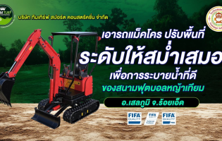 เอารถแม็คโคร ปรับพื้นที่ระดับให้ สม่ำเสมอ เพื่อการระบายน้ำที่ดี มาตรฐานที่ดีของสนามฟุตบอลหญ้าเทียม