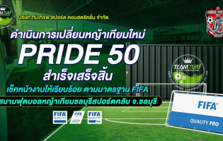ดำเนินการเปลี่ยนหญ้าเทียมใหม่ PRIDE 50 สำเร็จเสร็จสิ้น เช็คหน้างานให้เรียบร้อย ตามมาตรฐาน FIFA