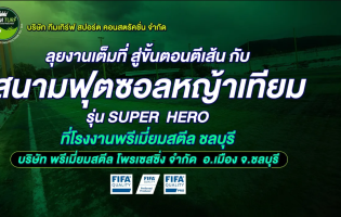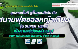 ลุยงานเต็มที่ สู่ขั้นตอนตีเส้น กับสนามฟุตซอลหญ้าเทียม รุ่น SUPER HERO ที่โรงงานพรีเมี่ยมสตีล ชลบุรี